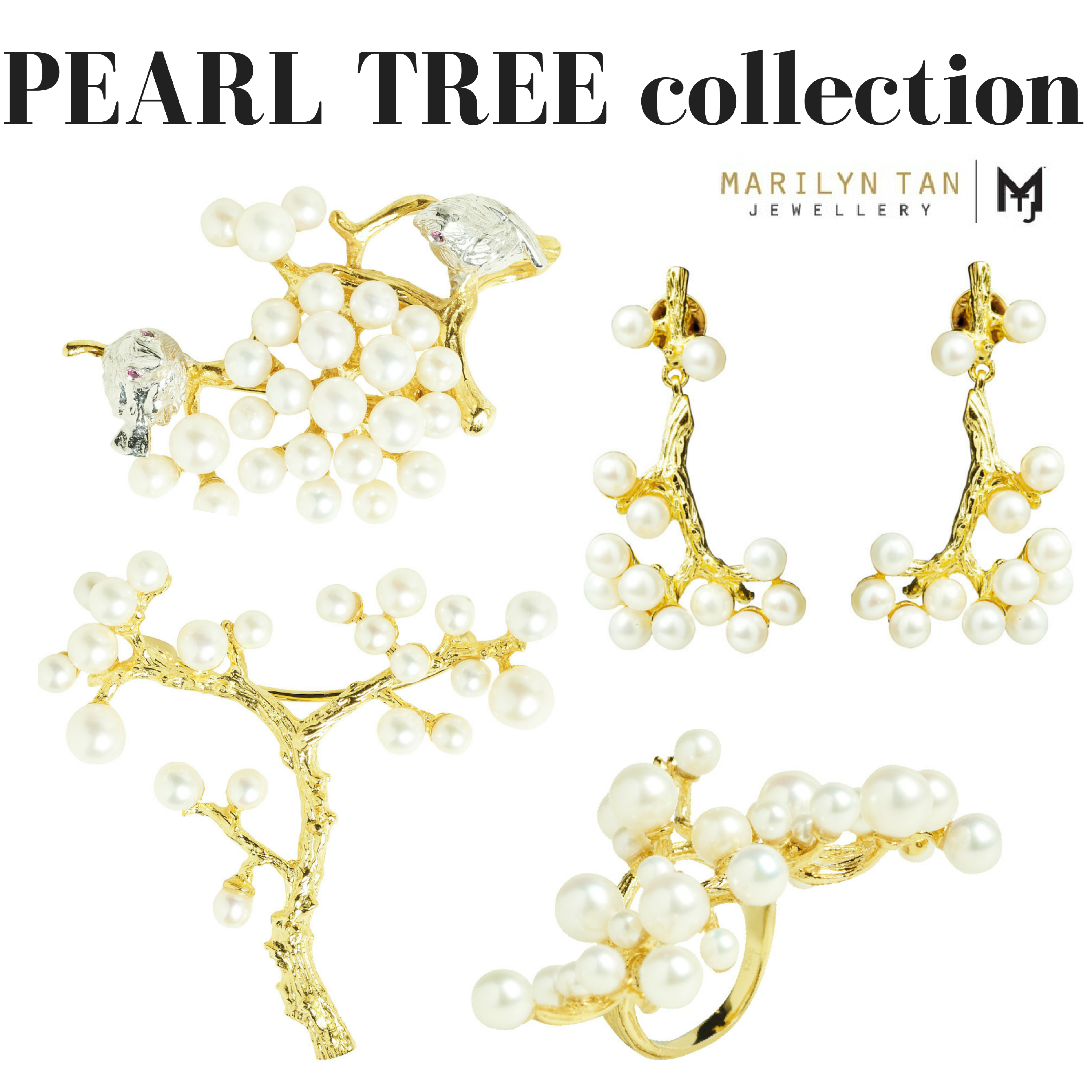Marilyn Tan took a vow to wow us for years to come, but even her not so recent collections still make tremendous impressions on all customers! This Pearl Tree collection is a wonderful example: The perfect marriage of just enough bling of yellow gold and gentle freshwater pearls makes it an unforgettable masterpiece of jewelry art.